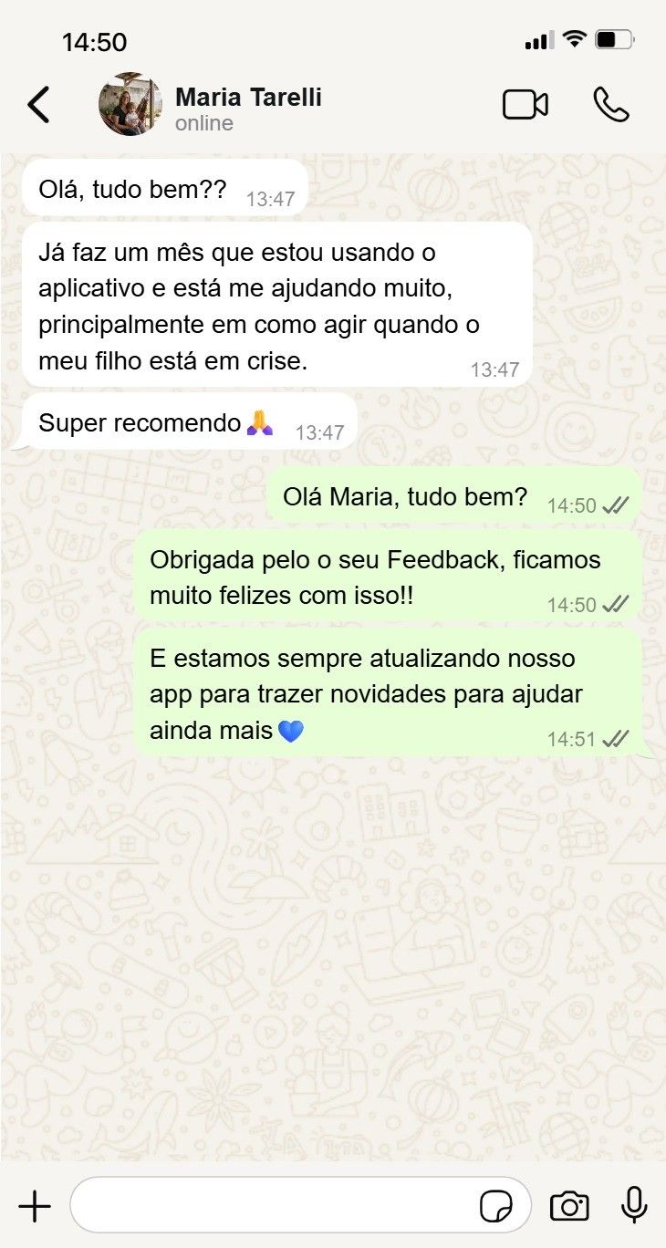 "Percebo que os pais que usam o aplicativo chegam mais preparados para as sessões."