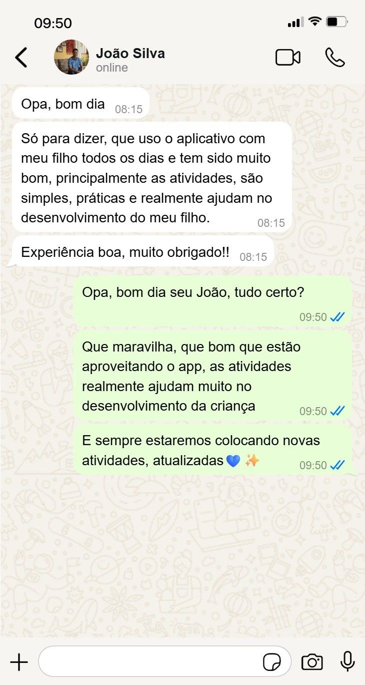 " O material do app é prático e direto. Recomendo para todos os pais que atendo."